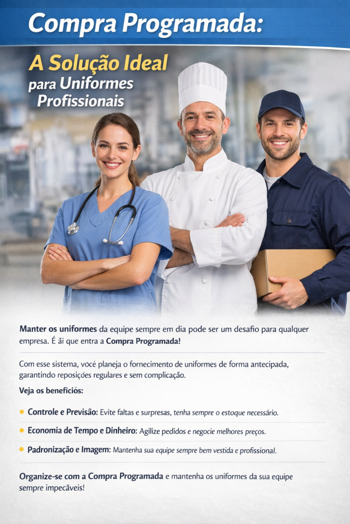 A compra programada não é apenas uma forma de adquirir uniformes — é uma estratégia para melhorar a gestão, reduzir custos e fortalecer a imagem da sua empresa.